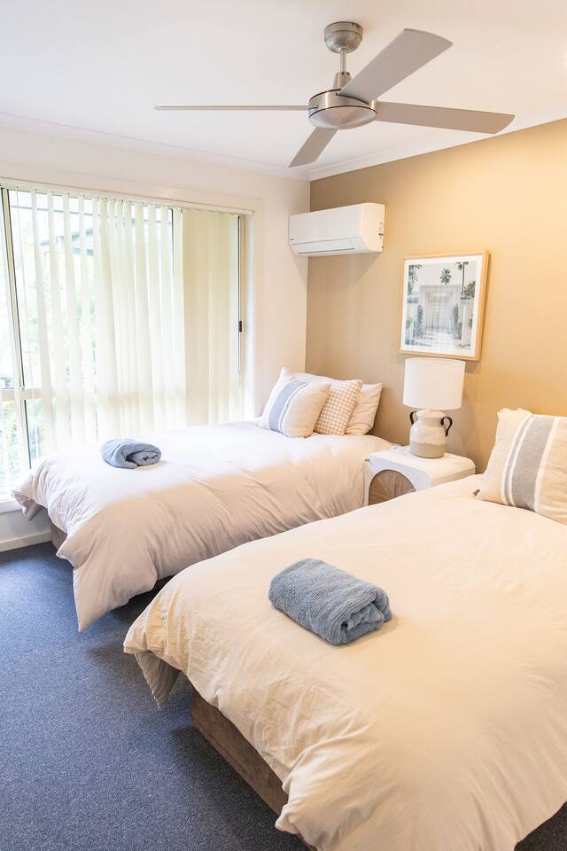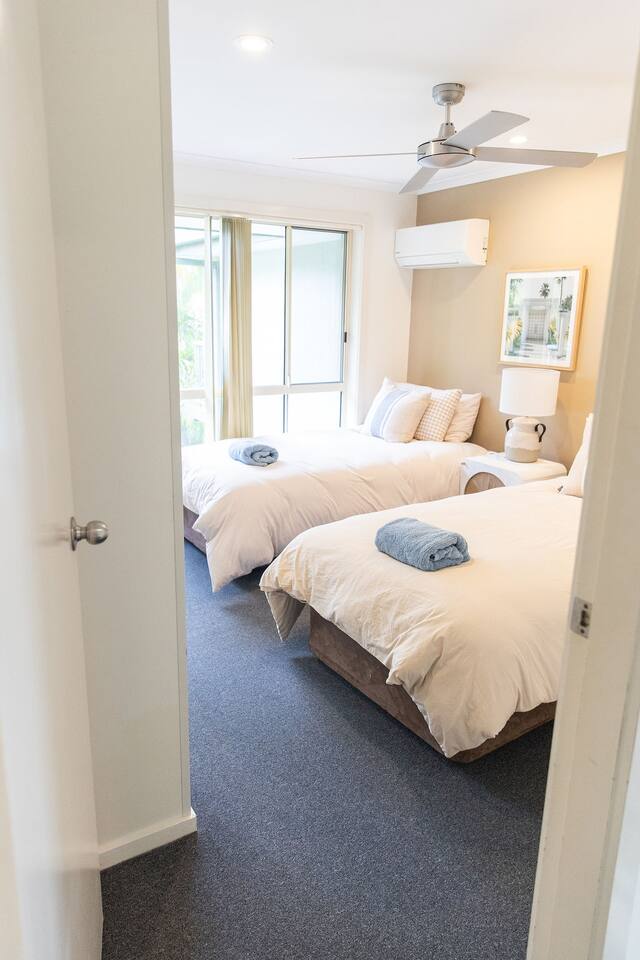 At Paradise Palms, you can enjoy all the facilities of the newly renovated Resort while you're on holiday in the lush tropical and tranquil setting of our Villa. Located by the beautiful Diggers Beach. If you have a larger family, we also have the unit next door, just ask for its availability. 2 Bedroom, 2 1/2 bathrooms, with many features, including: * Air Conditioning * Bedroom with King bed * Bedroom with 2 Singles * Full Kitchen & Dining area (seats 6) * Lounge with Smart TV *Single Armchair Sofa Bed * Covered outdoor patio * Washer & Dryer located in villa Resort Facilities: * Tennis Court * Indoor heated lap pool * Outdoor (non heated) pool and caves * BBQ area * Day Spa * Child playground * Gym * Putt Putt golf area * Direct beach access to Diggers Beach * Please note that phone and internet reception is very limited throughout the grounds depending on your carrier - this is out of our control so just note this before booking. We do have our own WiFi located in the Villa.