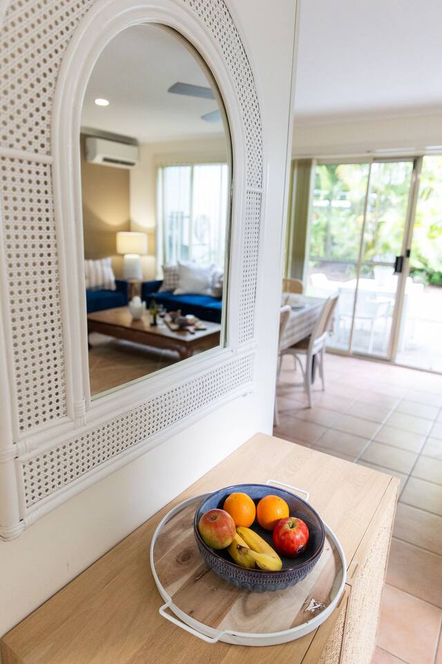 Paradise Palms is a Stylishly renovated 2 bedroom Villa with kitchen and dining area as well as outdoor patio and garden area. The Villa is part of the Aanuka Resort so you can enjoy access to all the amenities which include pools, tennis courts, mini golf as well as direct beach access to the patrolled, Diggers Beach. Enjoy cocktails at the new Aanuka Beach club and which also has fabulous pizzas and food. No need to leave the resort!